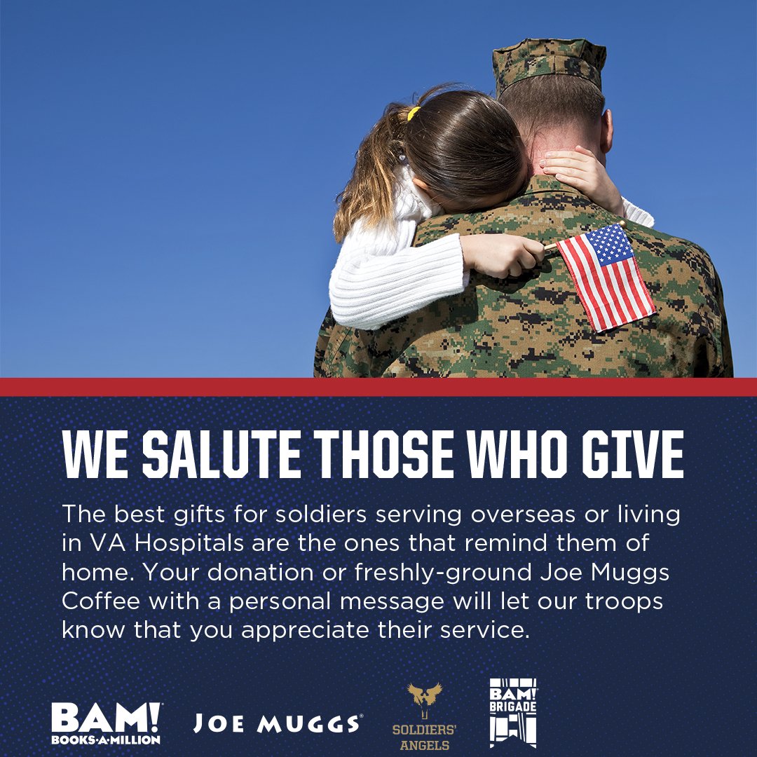 The latest Coffee for the Troops event runs from September 25 through October 23 2021During this time Books-A-Million customers can donate a bag of Joe Muggs Coffee.